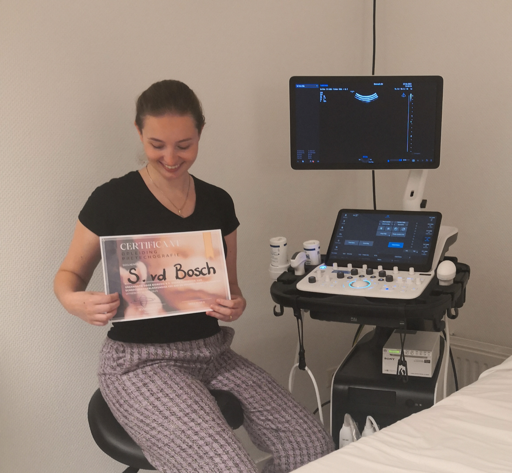 Hoewel ik van oorsprong in de IT werk, bleef de liefde voor zwangerschap en echo’s altijd kriebelen. Daarom heb ik een speciale opleiding voor pretecho’s gevolgd, waarin ik de technieken en fijne kneepjes van het vak heb geleerd. Met die kennis — én een flinke dosis enthousiasme — ben ik mijn eigen praktijk begonnen.